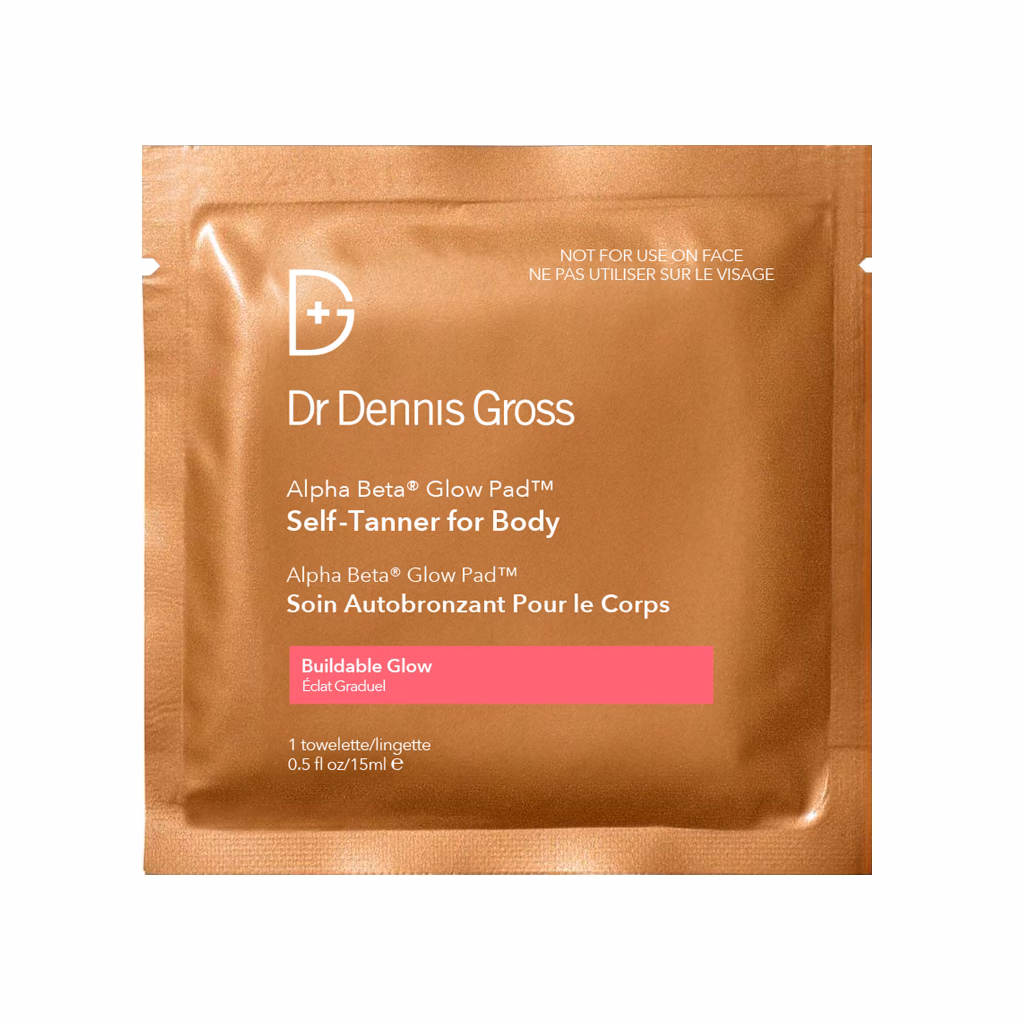 Dr. Dennis Gross' etterlengtede Alpha Beta® Glow Pad™ Self-Tanner for Body er tilbake. Nå med en oppdatert formel med mer melkesyre som skånsomt eksfolierer og styrker hudens fuktbarriere ved å stimulere ceramidproduksjonen. Serviettens tekstur, sammen med AHA- og BHA-syrer, jevner ut hudoverflaten og gir en jevn og stripefri påføring. Innkapslet DHA gir en naturlig tone som utvikler en solkysset glød i løpet av en time, mens vitamin E og fosfolipider bidrar til å gi næring til huden og holde den fuktig. Denne hurtigtørkende solbrune fargen blekner gradvis og jevnt i løpet av en uke, men kan brukes 2-3 ganger i uken for en dypere, byggbar farge. Trenger ikke vaskes av og misfarger ikke. Pakken inneholder 8 påføringer.